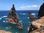 Vor Anker an der östlichsten Landzunge von Madeira, São Lourenço. Wir sind umgeben von Felsen verschiedenster Farben und Strukturen und umzingelt von hunderten Wanderern. Mit unserem Beiboot haben wir uns nicht getraut in der Brandung an dem kleinen Strand anzulanden. Dann mal schwimmen mit unseren wasserdichten Taschen und uns in die Horde Wanderer einreihen. Die Felsen sind wirklich eindrucksvoll, wir fühlen uns an die Wüste Sinai erinnert. Unterwegs ist sogar eine kleine Snäckbar.